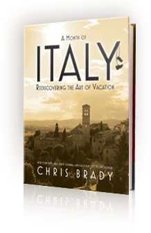 A couple of months ago, I was contacted by author Chris Brady’s publiscist. They were starting a publicity campaign for Chris’s new book A Month of Italy: Rediscovering the Art of Vacation and they wanted to buy ad space on Vagobond. I asked the publicist, Doug, if he would send me over a copy of the book so I could make sure it was something I could feel good about recommending. I also offered to do a review on the condition that it be honest and unbiased.